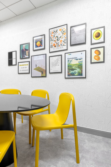 In our endeavor to make The Idea Center at Miami Dade College Homestead Campus a multifunctional space, we didn't stop at the main area. We also dedicated ourselves to creating a small conference room that was equally vibrant and inspiring. To infuse this room with a sense of local heritage and history, we designed a captivating gallery wall. This gallery wall serves as a visual journey through the rich history of Homestead and the Redlands, featuring historical photographs, documents, and iconic figures. At the heart of the room, a remarkable historical aerial photo of the Redlands in 1934 takes center stage, providing a unique perspective of the area's evolution. The gallery wall also pays tribute to influential figures such as Henry Flagler, who left an indelible mark on the region. This small conference room now stands as a captivating space where the past and present converge, serving as a source of inspiration for all who gather within its walls.