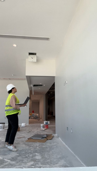 When we began this project, the space was still under construction. We had multiple site visits with our team to get a better feel for the space architecturally. One side of the room consisted of large curved windows all the way around. Because of the large windows, the room gets lots of natural light and enhances materials, and energizes the space It is indeed a design element like no other. Below are a few progression photos of our site visits.